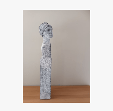 Het gedrapeerde doek en de zachte terracottakleur voegen elegantie toe en laten het zonlicht prachtig spelen op de buste. Echt een liefdevolle aanvulling op ons interieur dat dezelfde kleuren nog meer tot zijn recht brengt. Het kreeg een centraal plaatsje op de kast, maar we wisselen al eens want het beeld kan je overal zetten. Bedankt, Kathleen"